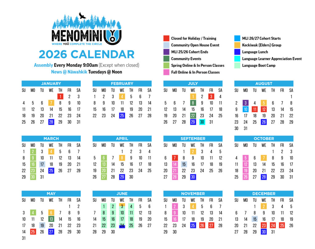 We have an exciting year planned for Menomini yoU and we invited yoU to get involved. Menomini yoU offers three levels of Menomini language courses (online and in person), a summer Language Boot Camp for advanced learners and a year-long Menomini Lifeways Institute (MLI) program that blends language learning with cultural experiences.